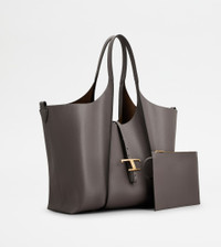 T TIMELESS SHOPPING BAG IN LEATHER MEDIUM - GREY