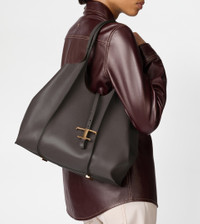 Shopping bag with flowing lines, crafted in soft calfskin leather with ribbing, branded metal T Timeless pendant accessory and double handles. Wide internal compartment with removable pouch. - Dimensions: L 18.5 ins x H 11.4 ins x D 5.5 ins - Double handles - Made in Italy - Women's Tod's Shopping Bag - Item crafted in calfskin leather - Branded metal T Timeless pendant accessory - Strap and snap closure - Removable zipped pouch - Maintenance and care cards included - Branded dustbag