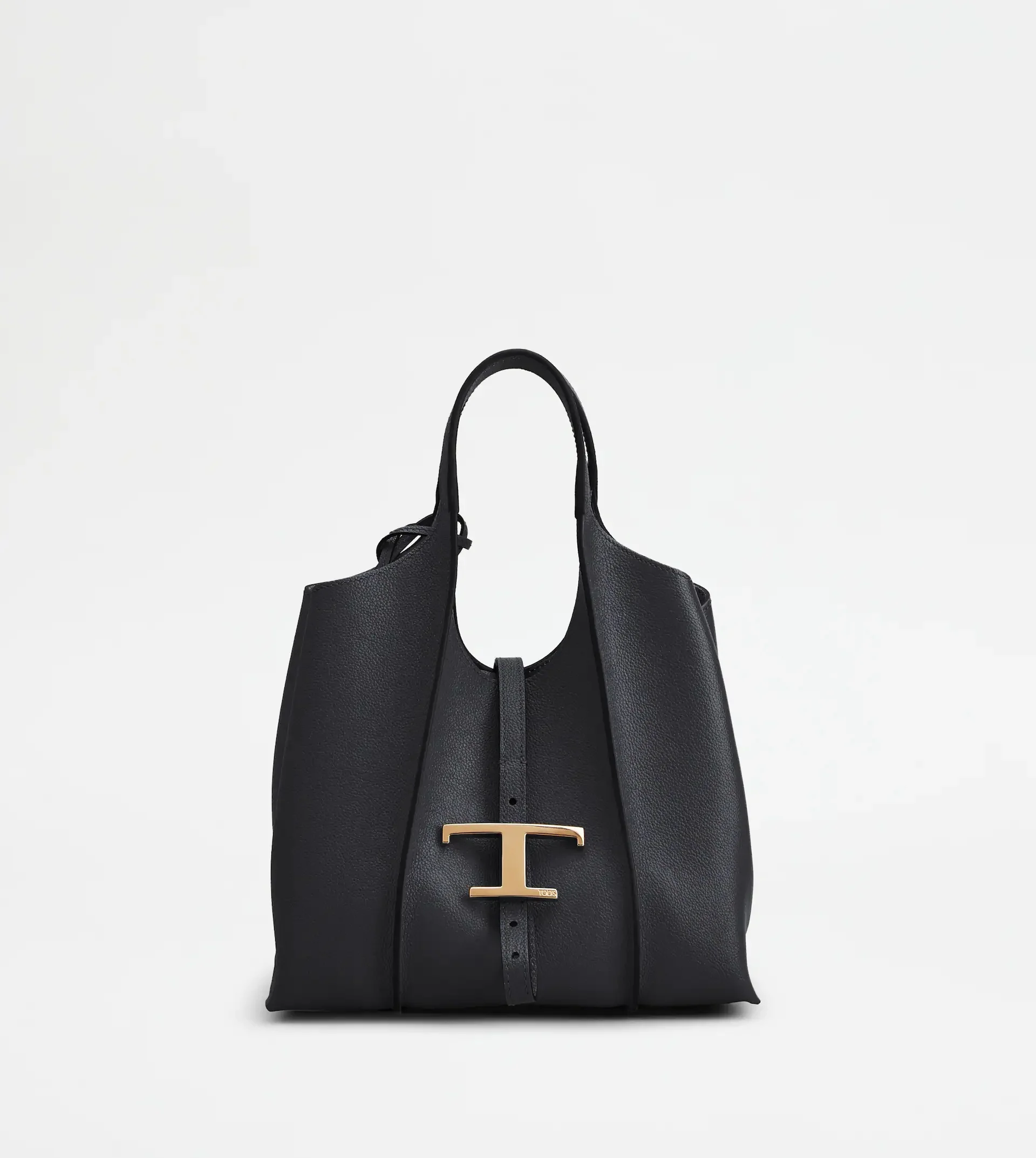 T TIMELESS SHOPPING BAG IN LEATHER MINI - BLACK