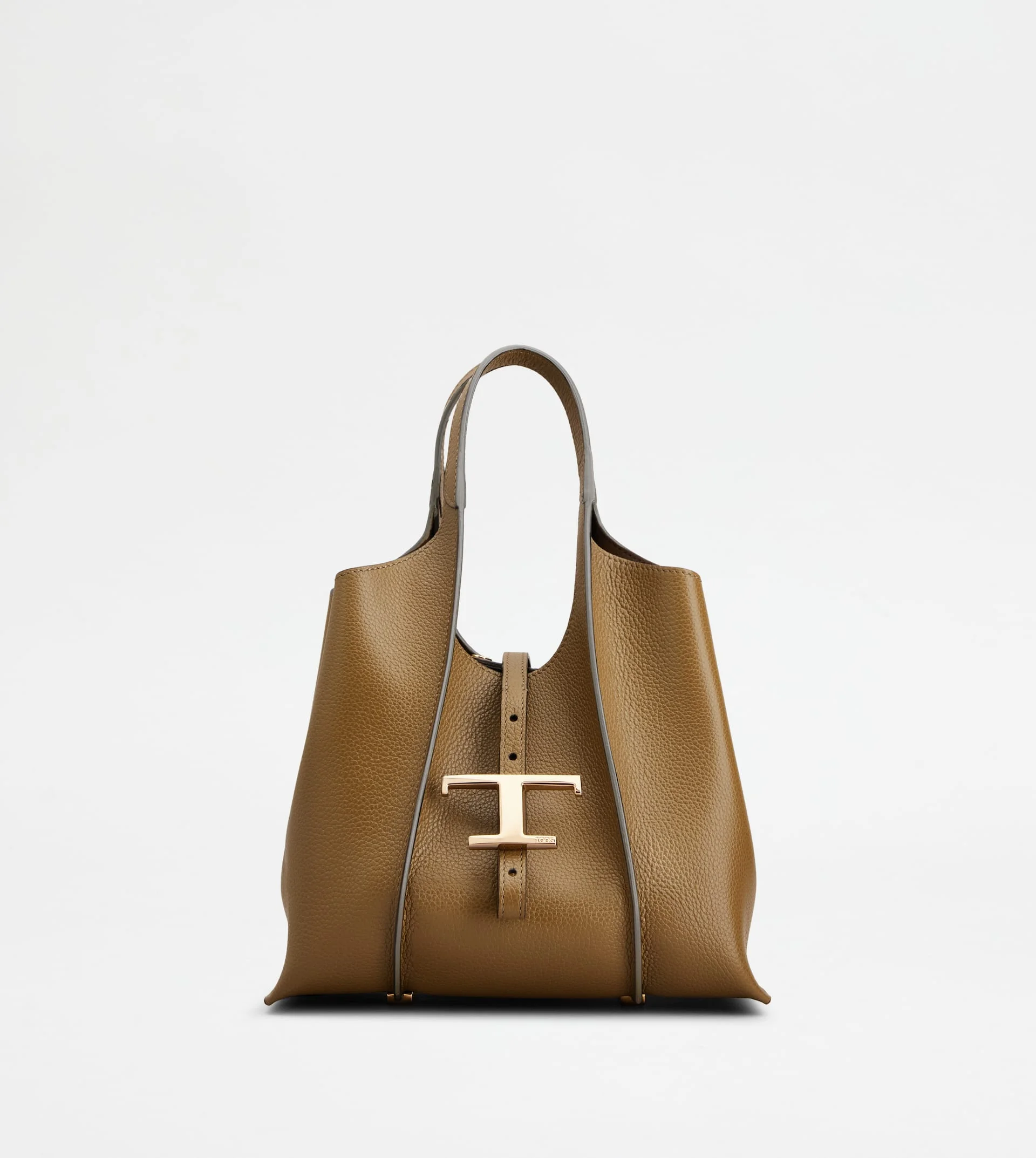 T TIMELESS SHOPPING BAG IN LEATHER MINI - BROWN