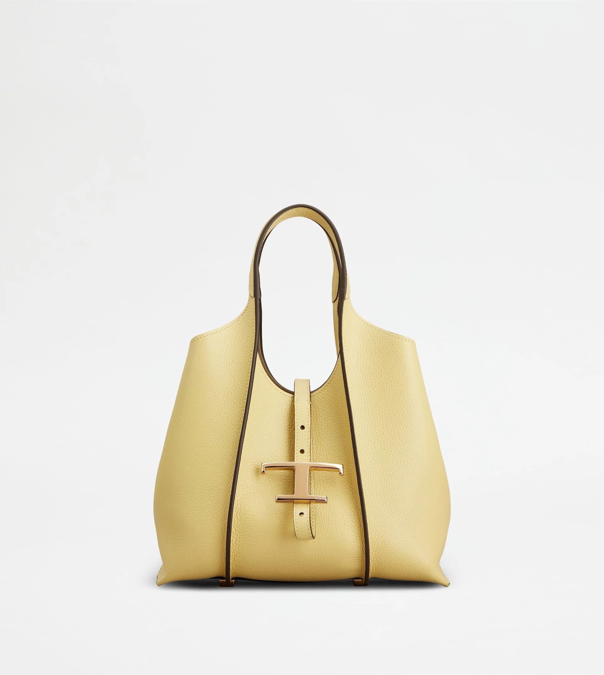 T TIMELESS SHOPPING BAG IN LEATHER MINI - YELLOW