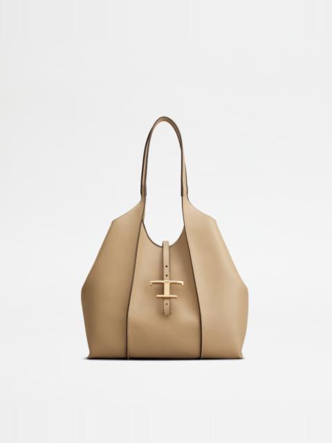 Shopping bag with flowing lines, crafted in elegant hammered leather with ribbing, branded metal T Timeless pendant accessory and double handles. Wide internal compartment with a removable pouch. - Dimensions: L 13.4 ins (extended compartment) x 9.8 ins x 5.5 ins - Handles: height (drop) 10.2 ins - Made in Italy - Women's Tod's Shopping Bag - Item crafted in leather - Branded metal T Timeless pendant accessory - Closure with strap and snap button - Removable zipped pouch - Maintenance and care cards included - Branded dustbag