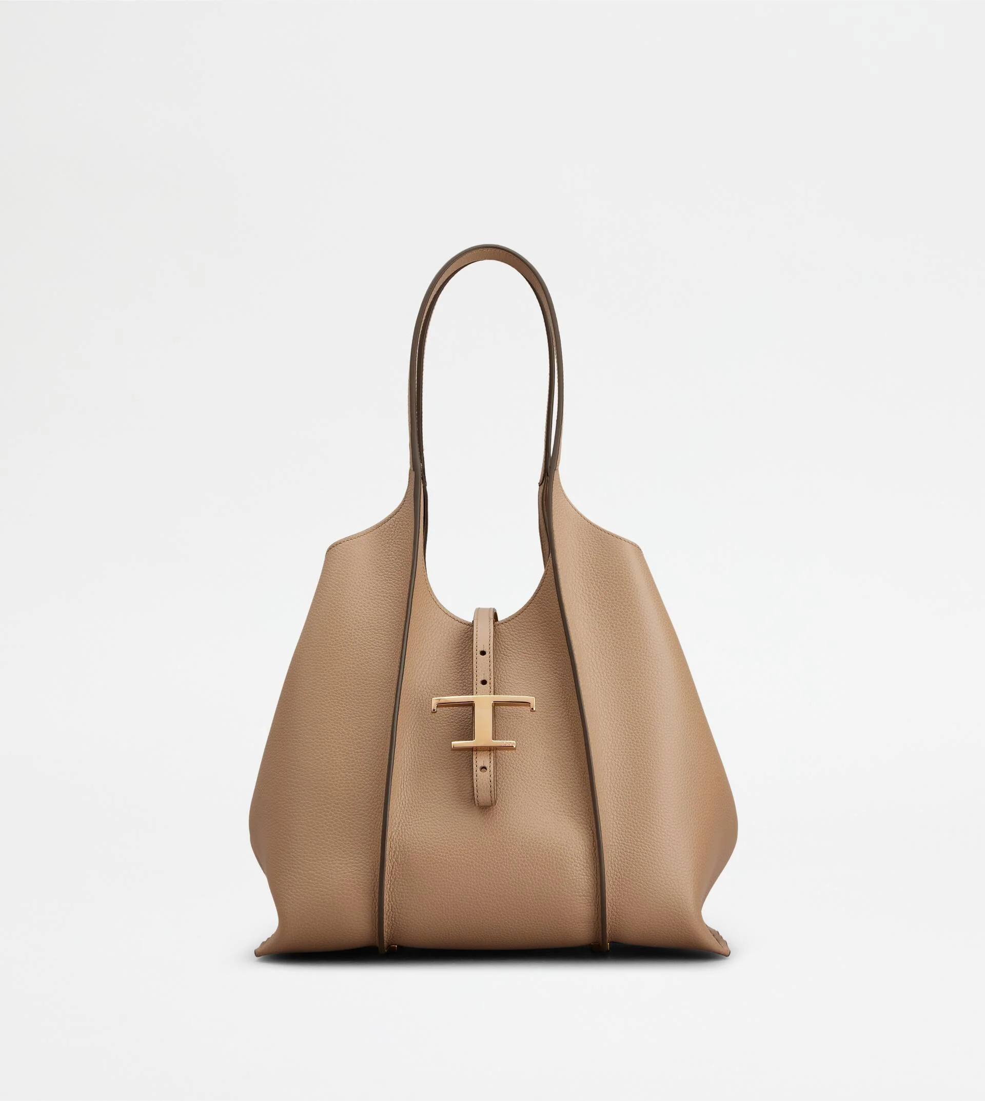 T TIMELESS SHOPPING BAG IN LEATHER SMALL - NATURAL