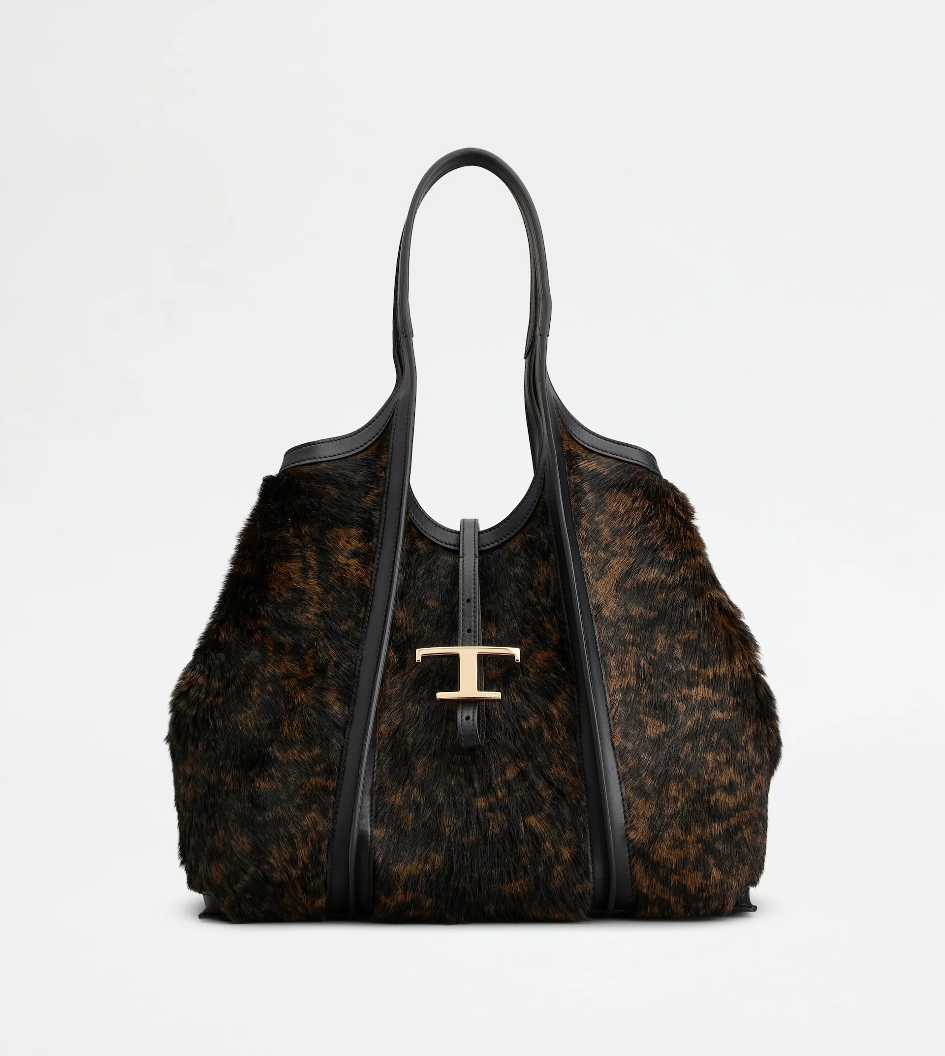 T TIMELESS SHOPPING BAG IN PONY EFFECT LEATHER MEDIUM - BLACK, BROWN
