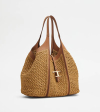 Shopping bag with sinuous lines, crafted in raffia with leather inserts and handles. Branded metal T Timeless pendant accessory, wide internal compartment with removable leather pouch. - Dimensions: 18.5 x 11.4 x 5.5 ins - Two handles in leather - Made in Italy - Women's Tod's Timeless Shopping Bag - Item crafted in raffia - Leather inserts - Branded metal T Timeless pendant accessory - Strap and snap button closure - Removable leather zipped pouch - Maintenance and care cards included - Branded dustbag