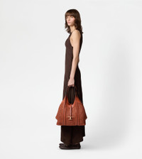 Shopping bag with sinuous lines, crafted in raffia with leather inserts and handles. Branded metal T Timeless pendant accessory, wide internal compartment with removable leather pouch. - Dimensions: 18.5 x 11.4 x 5.5 ins - Two handles in leather - Made in Italy - Women's Tod's Timeless Shopping Bag - Item crafted in raffia - Leather inserts - Branded metal T Timeless pendant accessory - Strap and snap button closure - Removable leather zipped pouch - Maintenance and care cards included - Branded dustbag