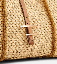 Large shopping bag in raffia with handmade crochet knitting. Characterized by the metal and leather T Timeless pendant, it comes with two practical handles. The compartment, with adjustable size, is complemented by a removable pouch in leather. - Dimensions: L 23.6 ins (extended compartment) x H 13.6 ins x D 7.9 ins - Handles: height (drop) 13 ins - Made in Italy - Summer shopping bag - Item crafted in raffia (viscose) - Calfskin leather detailing - Metal and leather T Timeless pendant - Strap and snap button closure - Removable zipped pouch in leather - Metal feet - Maintenance and care cards included - Branded dustbag
