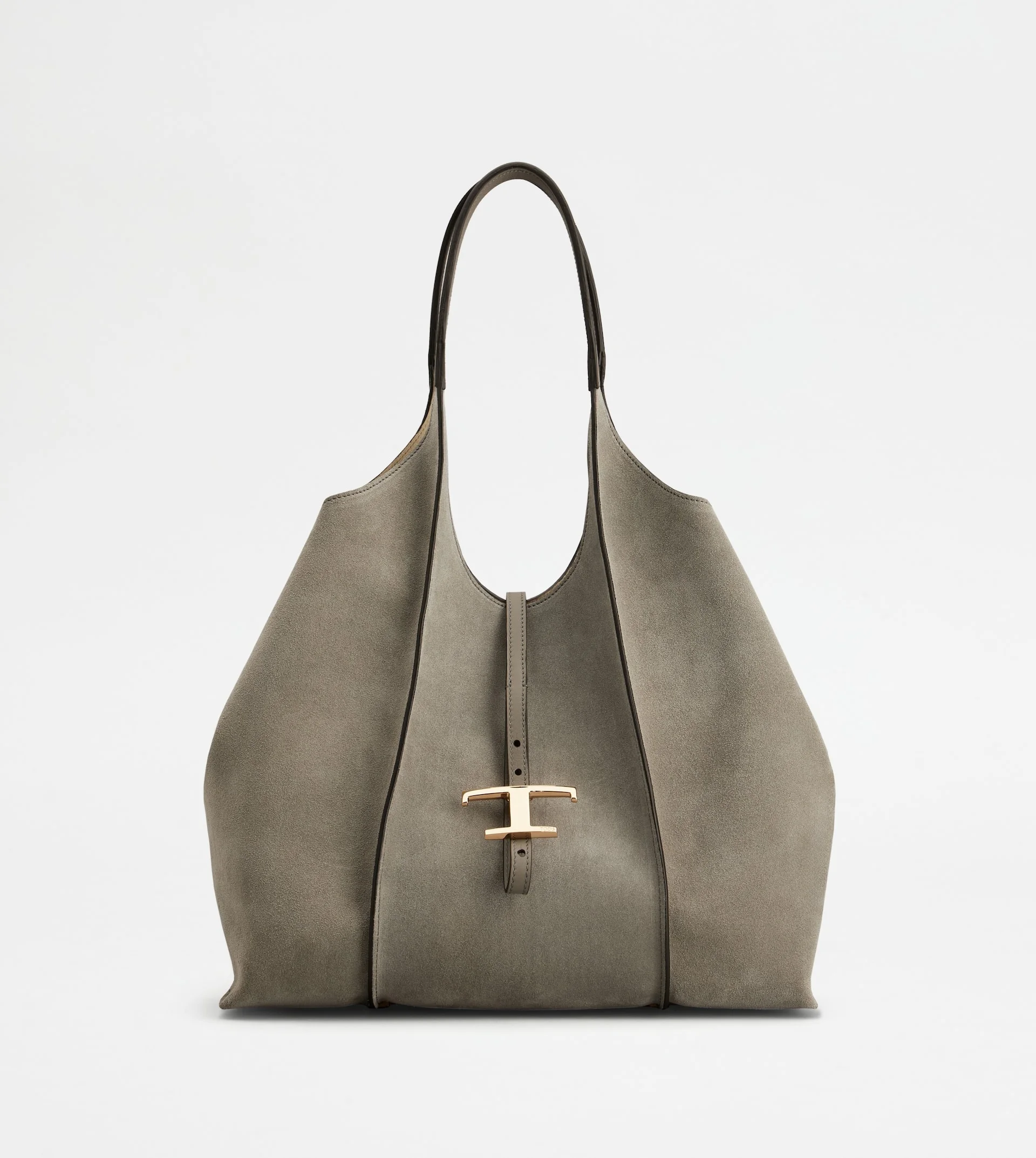 T TIMELESS SHOPPING BAG IN SUEDE MEDIUM - GREY
