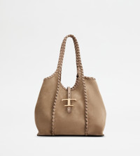 T TIMELESS SHOPPING BAG IN SUEDE SMALL - BEIGE