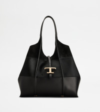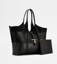 T TIMELESS SHOPPING BAG IN LEATHER MEDIUM - BLACK