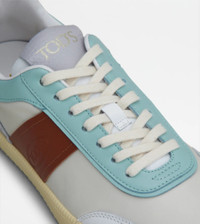 TOD'S TABS SNEAKERS IN LEATHER - OFF WHITE, LIGHT BLUE, BROWN