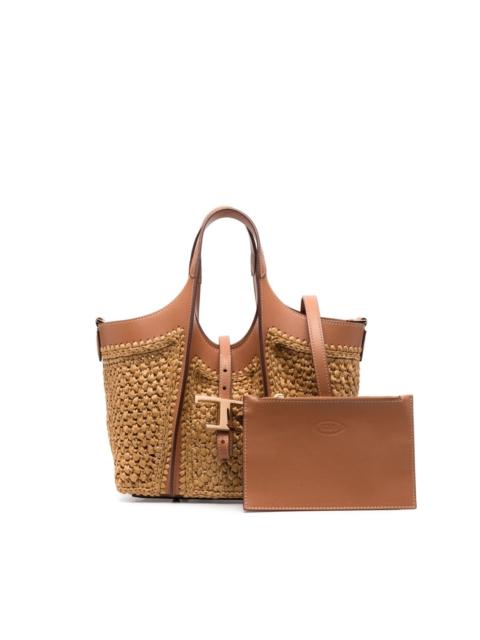 Timeless raffia tote bag It's no coincidence that Tod's' famed initial also stands for timeless, due to the brand's long-standing heritage and focus on craftsmanship. Evidenced in this tote bag by the same name, the cherished initial sits to the front in a gilded logo plaque, complementing the trapeze shape and intricately woven raffia construction. Made in Italy Composition Leather 100% SIZE & FIT Model measurements Height 5 ft 10 in(1.79 m) Bust/Chest 31.1 in(79 cm) Hips 35.03 in(89 cm) Waist 24.01 in(61 cm) Measurement DEPTH 5.51 in(14 cm) HANDLE 3.14 in(8 cm) HEIGHT 7.08 in(18 cm) STRAP 21.65 in(55 cm) WIDTH 13.77 in(35 cm)