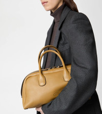 Characterized by maxi zip pulls, straps that elegantly cover the zip when closed, Tod's Darsena is defined by essential and feminine lines. Featuring characteristic tubular handles, it comes with the Tod's logo stamped on the front and a wrapped side padlock, a sophisticated distinctive trait. Here in fine natural-grained calfskin leather, this is a model with a distinctly urban nature, named after the city of Milan. - Dimensions: L 14.6 ins x H 7.1 ins x D 8.3 ins - Handles: height (drop) 5.5 ins - Made in Italy - Bauletto in leather - Item crafted in calfskin leather - Tod's logo stamped on the front - Padlock fit on the side - Double-slider zip closure - T-stitching detailing - Linen blend lining - Internal zipped pocket - Branded metal feet - Maintenance and care cards included - Branded dustbag