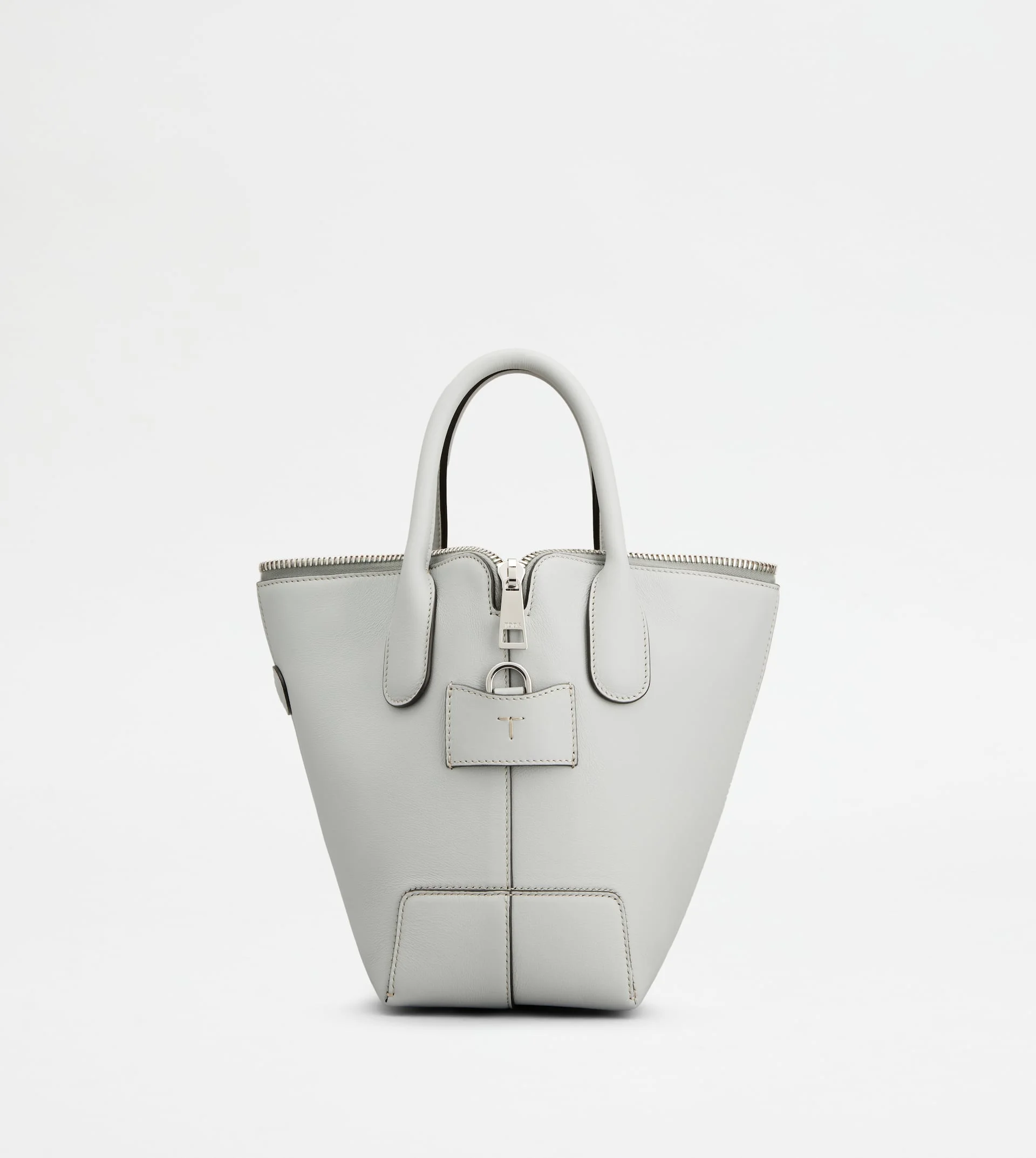 Tod's Di Bag Swing mini reinterprets the detailing of the iconic model by playing with volume and flowing. Characterized by a front that can turn into the side of the bag, depending on how it is worn, it comes with the T-stitching on one side and oval Tod's logo on the other. Featuring two tubular handles and a removable shoulder strap, it comes with a large zip and internal snaps for a versatile closure. Crafted in fine natural-grained calfskin leather, it is perfect for the everyday city look. - Dimensions: L 12.2 ins x H 8.3 ins x D 5.1 ins - Handles: height (drop) 4.3 ins - Adjustable and removable shoulder strap: height (drop from the central hole) 16.9 ins, length max 45.5 ins - Made in Italy - Tod's Di Bag Swing - Item crafted in calfskin leather - T-stitching detailing - Stamped Tod's logo - Double-slider zip and snap closure - Internal zipped pocket - Internal open pocket - Branded metal feet - Maintenance and care cards included - Branded dustbag