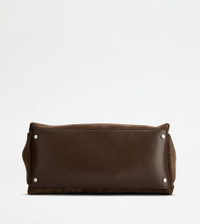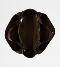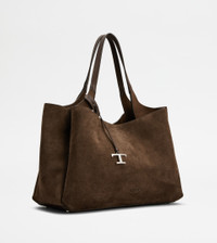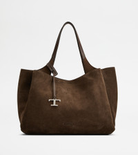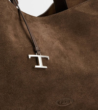 Flowing lines and elegant play of volumes characterize this bag in calfskin suede, with flat handles and Tod's logo stamped on the front. The interior, wide and functional, features two compartments separated by zipped pockets. A contemporary creation enriched by distinctive iconic detailing, such as metal T Timeless pendant and T-stitching. - Dimensions: L 16.1 ins x H 10.2 ins x D 7.5 ins - Handles: height (drop) 10.2 ins - Made in Italy - Tod's Bag - Item crafted in calfskin suede - Tod's logo stamped on the front - Removable pendant with metal T Timeless accessory - Metal snap hook and ring closure - 2 internal flat zipped pockets - Branded metal feet - Maintenance and care cards included - Branded dustbag