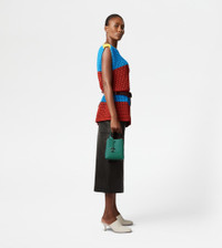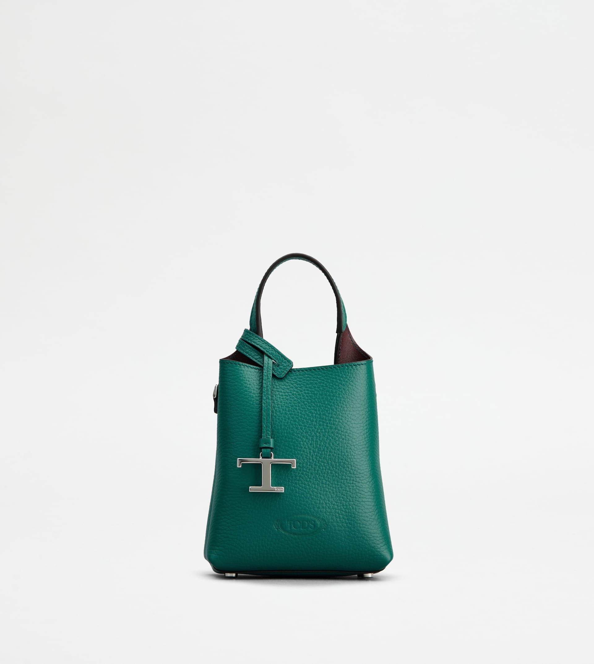 Micro bag in hammered leather, with Tod's logo stamped on the front. Characterized by flowing lines, it features fixed handle and removable shoulder strap. The interior, with a practical pocket that divides two compartments, is designed to hold your phone and essentials. A versatile accessory combining functionality and timeless style, personified by branded metal T Timeless pendant. - Dimensions: 5.5 x 7.1 x 3.3 ins - Handle 3.5 ins, adjustable and removable shoulder strap, 20.5 ins approx drop - Made in Italy - Women's Tod's Micro Bag - Item crafted in leather - Removable pendant with metal T Timeless accessory - Interior pocket - Branded metal feet - Maintenance and care cards included - Branded dustbag