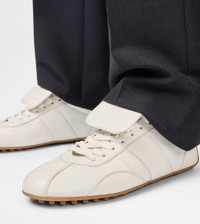 Tod's T-Marathon sneakers take inspiration from the world of indoor football. The vintage-inspired upper is crafted in soft nappa leather, with removable maxi tongue for a versatile mood. The stitched outsole, that extends across the heel, features the distinctive rubber pebbles. Lightweight and comfortable, they express a relaxed and casual style, with a sophisticated touch. - Made in Italy - Women's Tod's Sneakers - Ovine leather upper - Removable tongue with concealed magnet - Tod's logo stamped on the tongue - Leather lining and insole - Rubber outsole with rubber pebbles - Maintenance and care cards included - Branded dustbag - Additional laces included