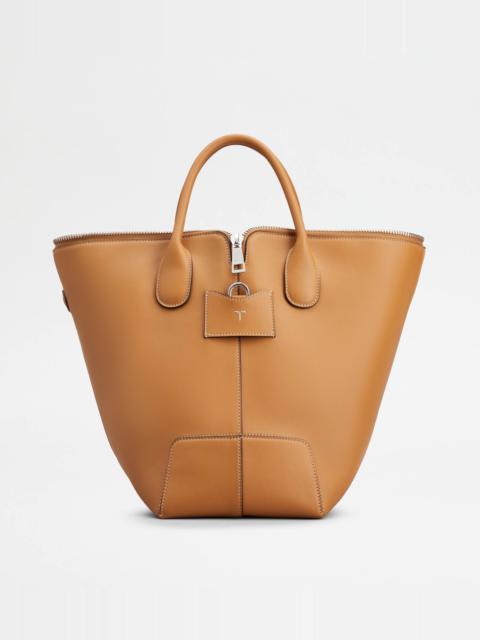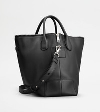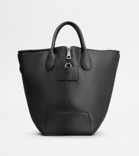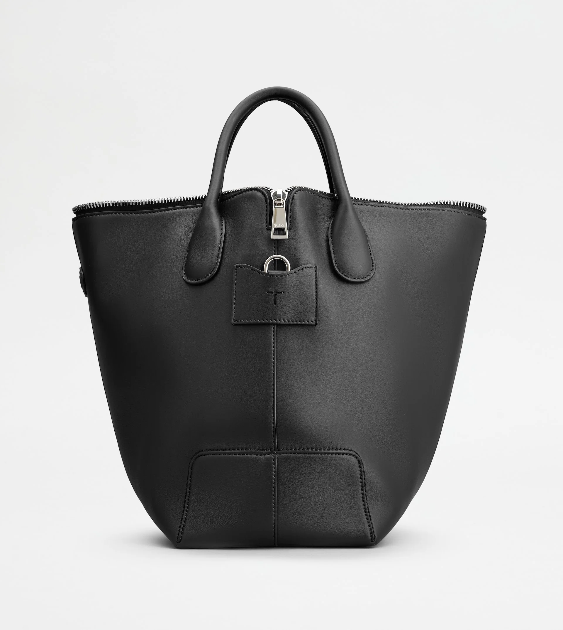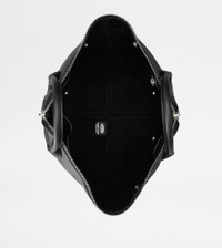 Tod's Di Bag Swing reinterprets the detailing of the iconic model by playing with volume and flowing. Characterized by a front that can turn into the side of the bag, depending on how it is worn, it comes with the T-stitching on one side and oval Tod's logo on the other. Featuring two tubular handles and a removable shoulder strap, it comes with a large zip and internal snaps for a versatile closure. Crafted in fine natural-grained calfskin leather, it is perfect for the everyday city look. - Dimensions: L 16.5 ins x H 10.6 ins x D 10.6 ins - Handles: height (drop) 3.9 ins - Adjustable and removable shoulder strap: height (drop from the central hole) 15.4 ins, length max 39 ins - Made in Italy - Women's Tod's Di Bag Swing - Item crafted in calfskin leather - T-stitching detailing - Stamped Tod's logo - Double-slider zip and snap closure - Internal zipped pocket - Internal open pocket - Branded metal feet - Maintenance and care cards included - Branded dustbag