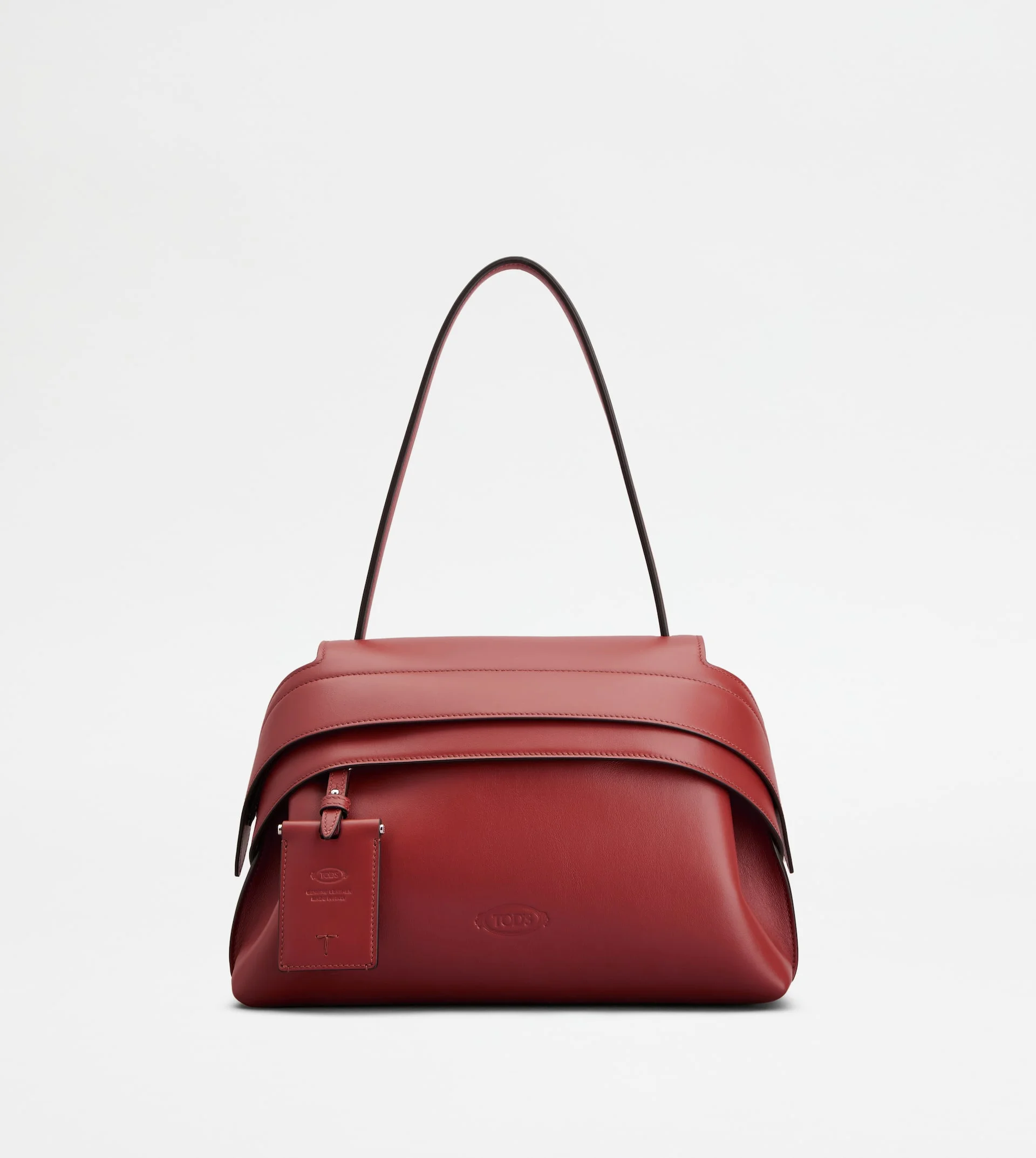 The iconic Tod's Wave Bag reinterpreted in a contemporary design with flowing and sophisticated lines. Crafted in soft calfskin leather, it comes with a practical concealed zip under the front strap, which can be fixed on the sides with snap buttons. The handle, thin and flat, ensures comfortable shoulder-wearing. A removable mirror and a pocket on the back, with Tod's monogram engraved at the center, complement the style. - Dimensions: L 13 ins x H 8.3 ins x D 4.3 ins - Handle: height (drop) 8.7 ins - Made in Italy - Bag in leather - Item crafted in calfskin leather - Tod's logo stamped on the front - Removable mirror - Back pocket with embroidered T - Zip closure - Internal zipped pocket - Maintenance and care cards included - Branded dustbag