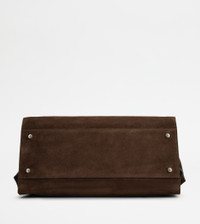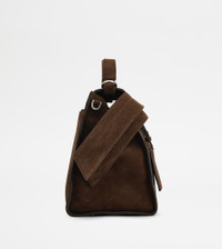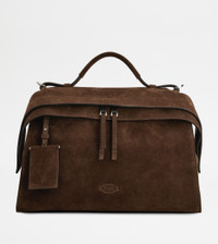 The iconic Tod's Wave Bag reinterpreted in a contemporary design with flowing and sophisticated lines. Crafted in soft suede, it comes with a practical concealed zip under the front strap, which can be fixed on the sides with snap buttons. Featuring a handle strap, it comes with an adjustable and removable shoulder strap in fabric. A detachable luggage tag complements the style. - Dimensions: L 15 ins x H 10.2 ins x D 7.3 ins - Handle: height (drop) 3 ins - Adjustable and removable shoulder strap: height (drop) 15-15.6 ins, length max 52 ins - Made in Italy - Suede bag - Item crafted in calfskin suede - Tod's logo stamped on the front - Removable luggage tag - T embroidered on the back - Double-slider zip closure - Cotton blend linen lining - Internal pocket - Branded metal feet - Maintenance and care cards included - Branded dustbag