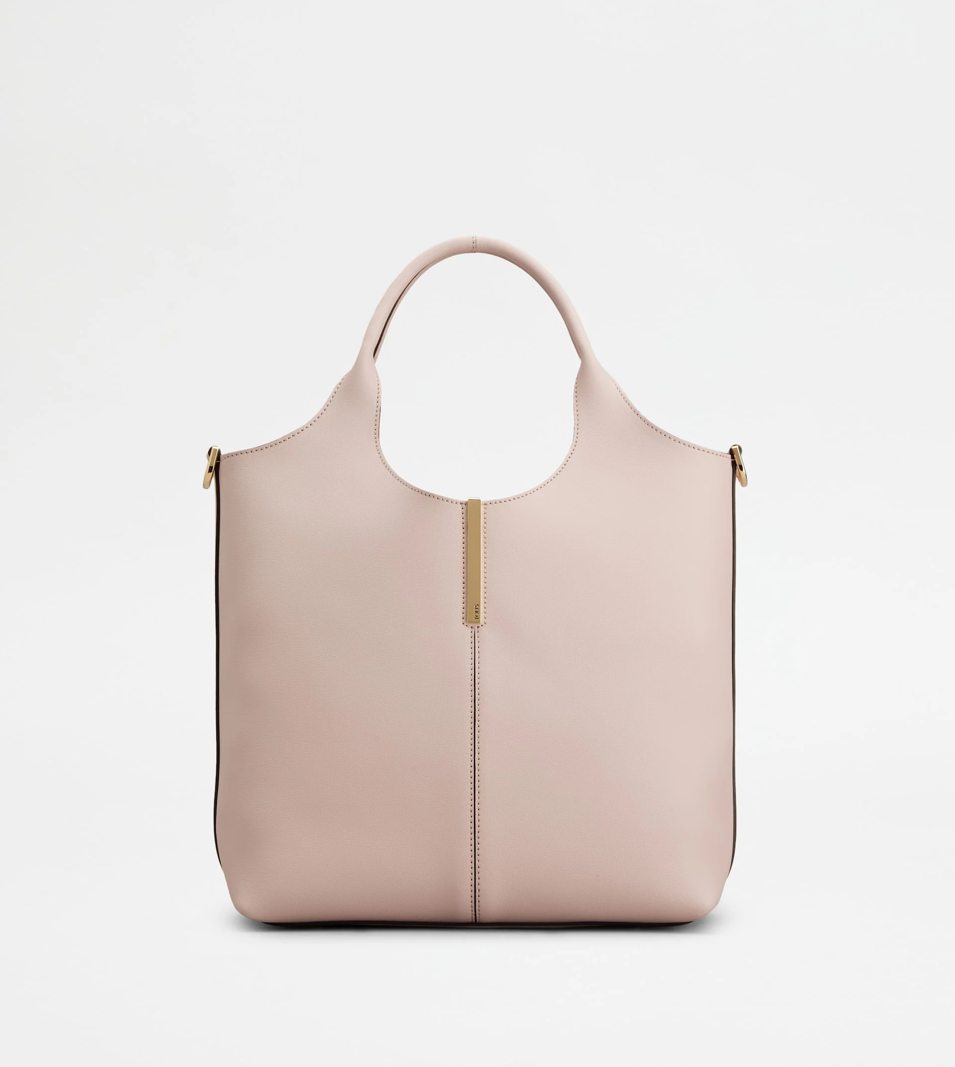 Essential design, lightness and practicality are combined in this tote shopping bag with a contemporary mood. Crafted in calfskin leather, it features a central stitching emphasized by the branded metal bar accessory. Closed with a magnet, it features a removable shoulder strap, for a versatile use. Perfect for the everyday urban look. - Dimensions: L 11.8 ins x H 10.6 ins x D 5.9 ins - Handles: height (drop) 5.7 ins - Adjustable and removable shoulder strap: height (drop from the central hole) 19.7 ins, length max 51.4 ins - Made in Italy - Tod's shopping bag - Item crafted in calfskin leather - Branded metal bar accessory on the front - Magnet closure - Branded metal feet - Maintenance and care cards included - Branded dustbag