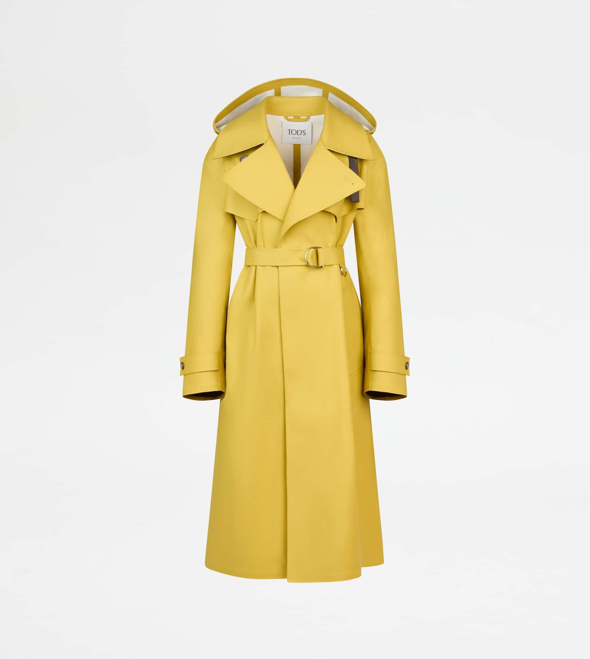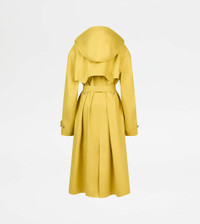TRENCH COAT IN COTTON WITH LEATHER DETAILING - YELLOW