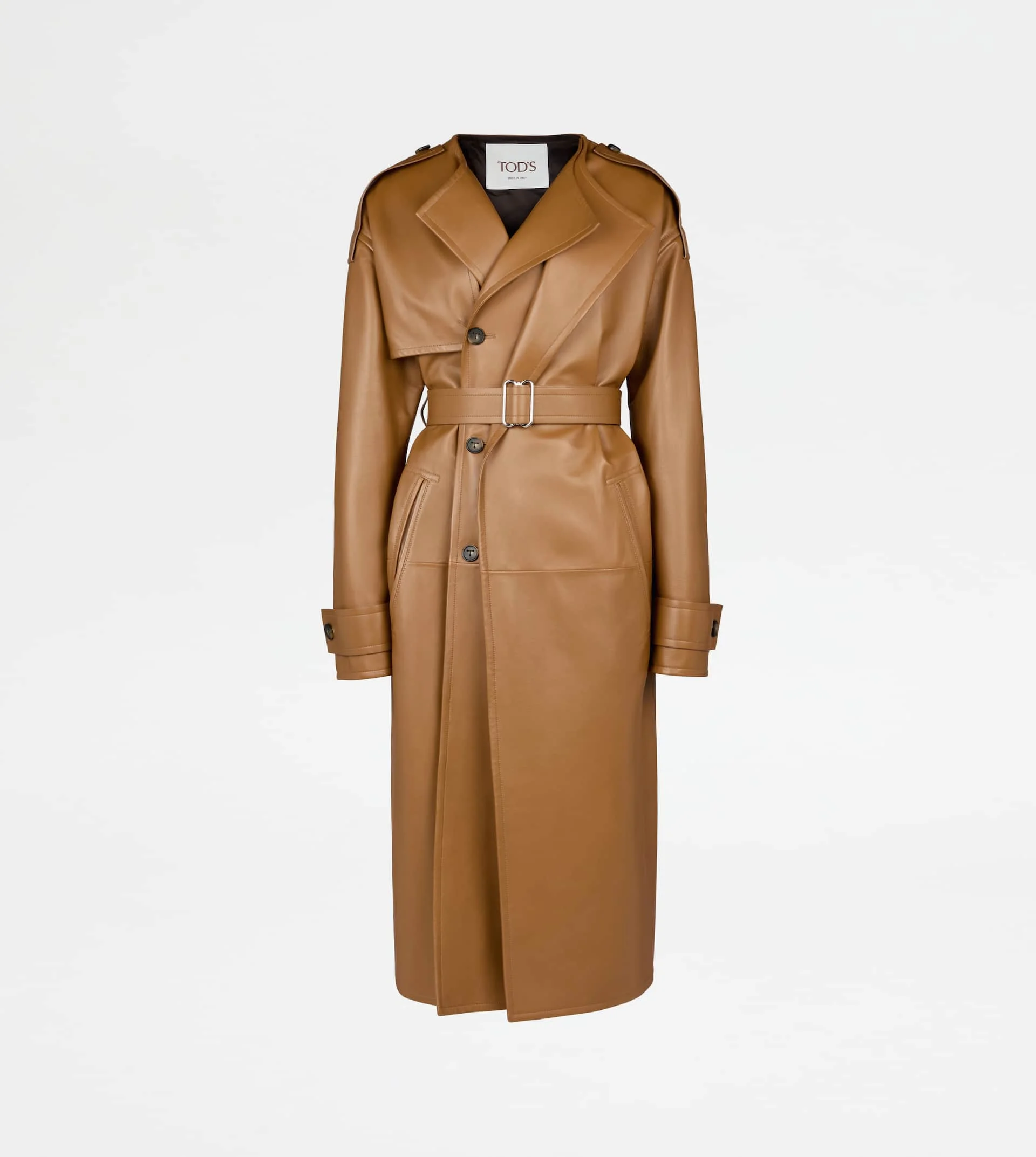 TRENCH COAT IN LEATHER RELAXED FIT - BROWN