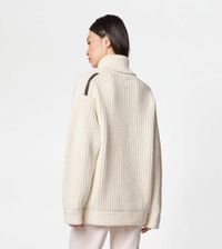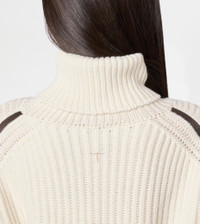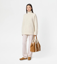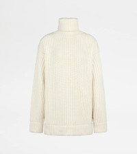 Turtleneck in cashmere with English rib knitting. Soft and warm, it features a leather ribbing on the shoulder back and the Tod's monogram hand-embroidered at the center. - Made in Italy - Turtleneck - The model is 5' 9'' and wears size S (IT) - Item composition: 100% cashmere, leather detailing - Maintenance and care cards included