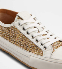 SNEAKERS IN FABRIC AND LEATHER - WHITE, BEIGE, BROWN