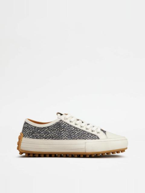 Characterized by a rubber outsole with the distinctive embossed rubber pebbles as on the heel, these sneakers feature an upper inspired by vintage basketball shoes. Crafted in tweed fabric and leather, with Tod's logo stamped on the tongue, they interpret a sporty and sophisticated taste. - Made in Italy - Tod's Sneakers - Fabric upper - Calfskin leather inserts - Tod's logo stamped on the tongue - Leather lining and insole - Rubber outsole with embossed rubber pebbles - Maintenance and care cards included - Branded dustbag - Additional laces included