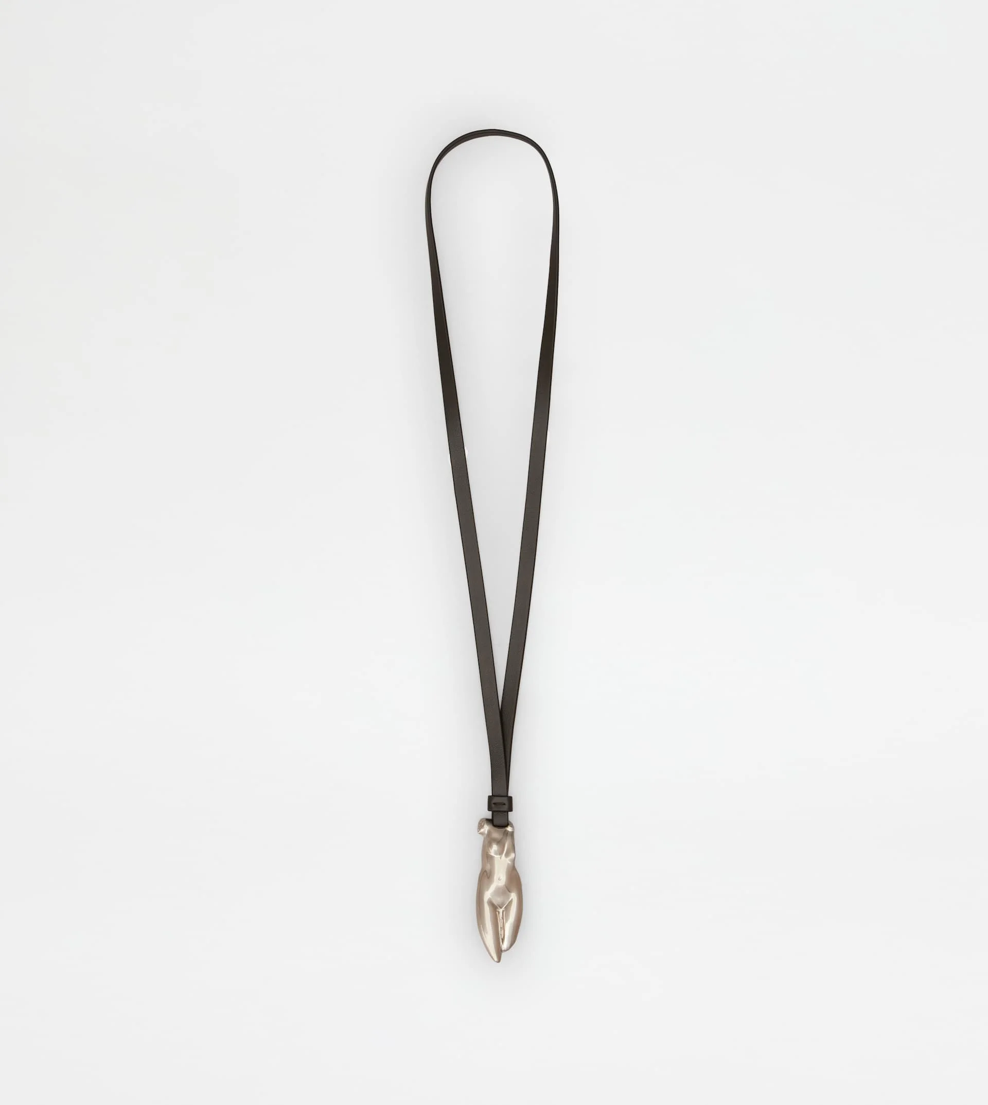 Inspired by classical sculptures portraying the bust of the goddess Venus, this unique necklace celebrates women in their simplest and most natural femininity. A one of a kind accessory crafted in copper with a leather strap. - Dimensions: L 1 in x H 19.1 ins x D 0.8 ins - Made in Italy - Venus Bust Necklace - Item crafted in copper and calfskin leather - Maintenance and care cards included