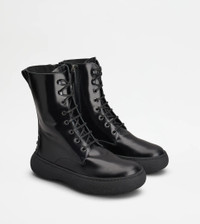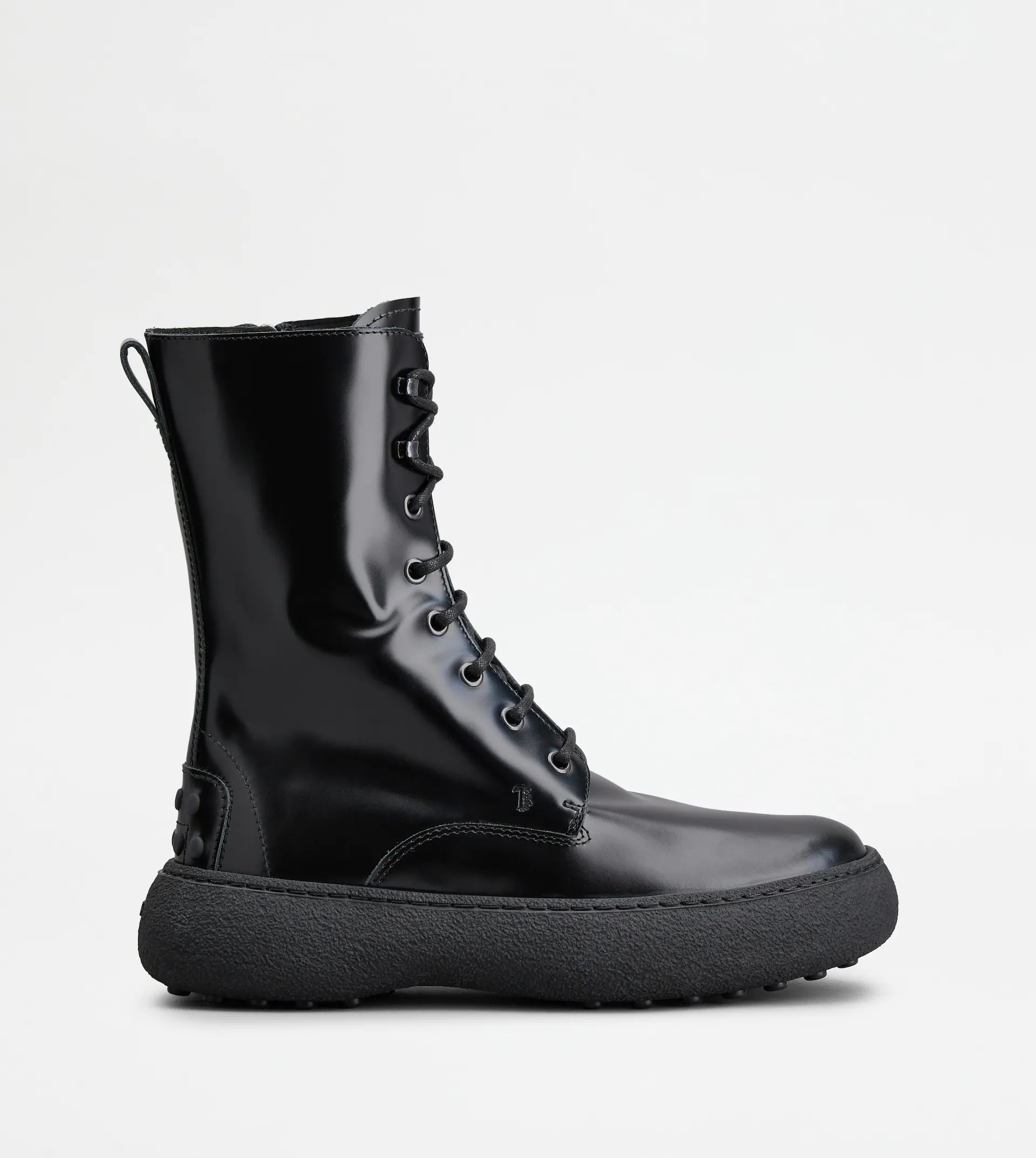 TOD'S W. G. LACE-UP ANKLE BOOTS IN LEATHER - BLACK