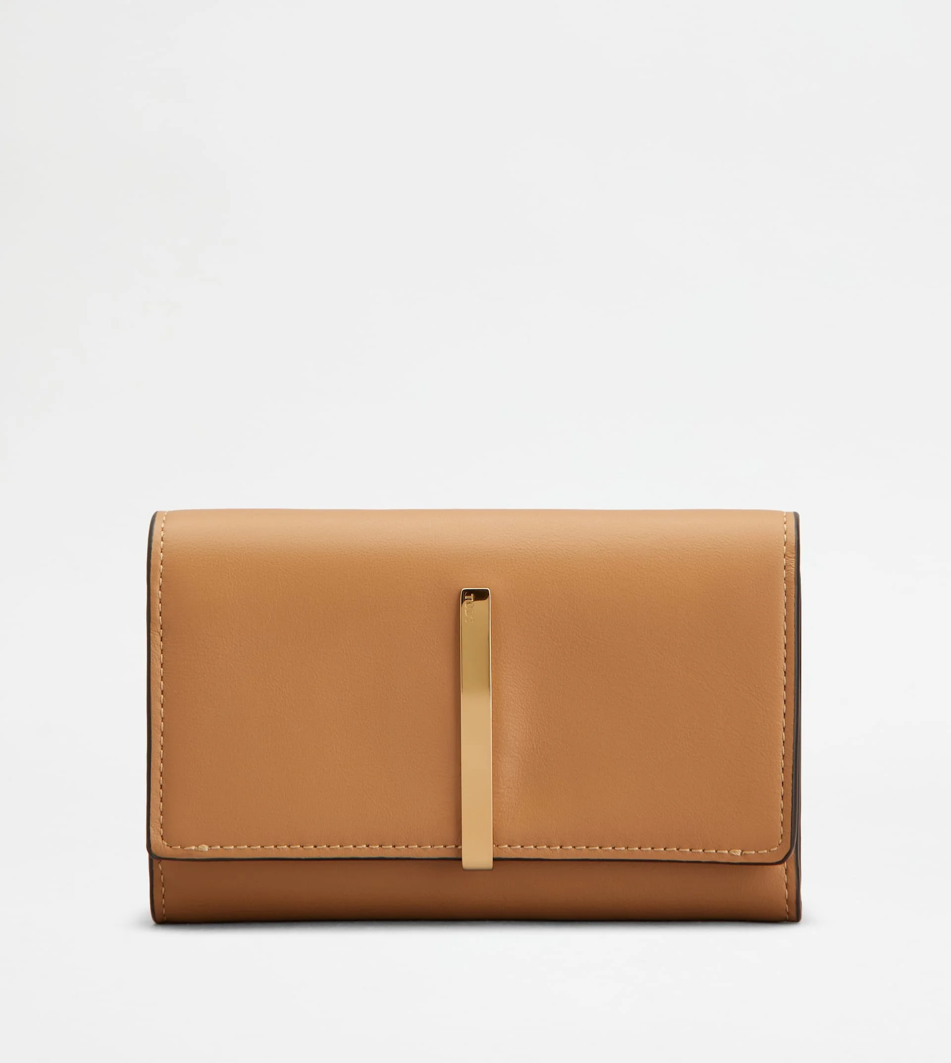 Wallet in refined calfskin leather, with branded metal bar accessory. Featuring a zipped coin pocket, it come with a compartment closed with a snap. On the inside, a banknote compartment, two flat pockets and cardslots. - Dimensions: L 5.5 ins x H 3.4 ins x D 1.2 ins - Made in Italy - Wallet in leather - Item crafted in calfskin leather - Metal bar accessory on the front - Snap closure - Calfskin leather and fabric interior - 1 zipped coin pocket - 1 banknote compartment - 2 flat pockets - 8 cardslots - Maintenance and care cards included