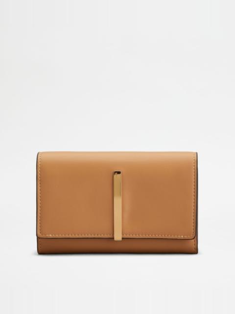Wallet in refined calfskin leather, with branded metal bar accessory. Featuring a zipped coin pocket, it come with a compartment closed with a snap. On the inside, a banknote compartment, two flat pockets and cardslots. - Dimensions: L 5.5 ins x H 3.4 ins x D 1.2 ins - Made in Italy - Wallet in leather - Item crafted in calfskin leather - Metal bar accessory on the front - Snap closure - Calfskin leather and fabric interior - 1 zipped coin pocket - 1 banknote compartment - 2 flat pockets - 8 cardslots - Maintenance and care cards included