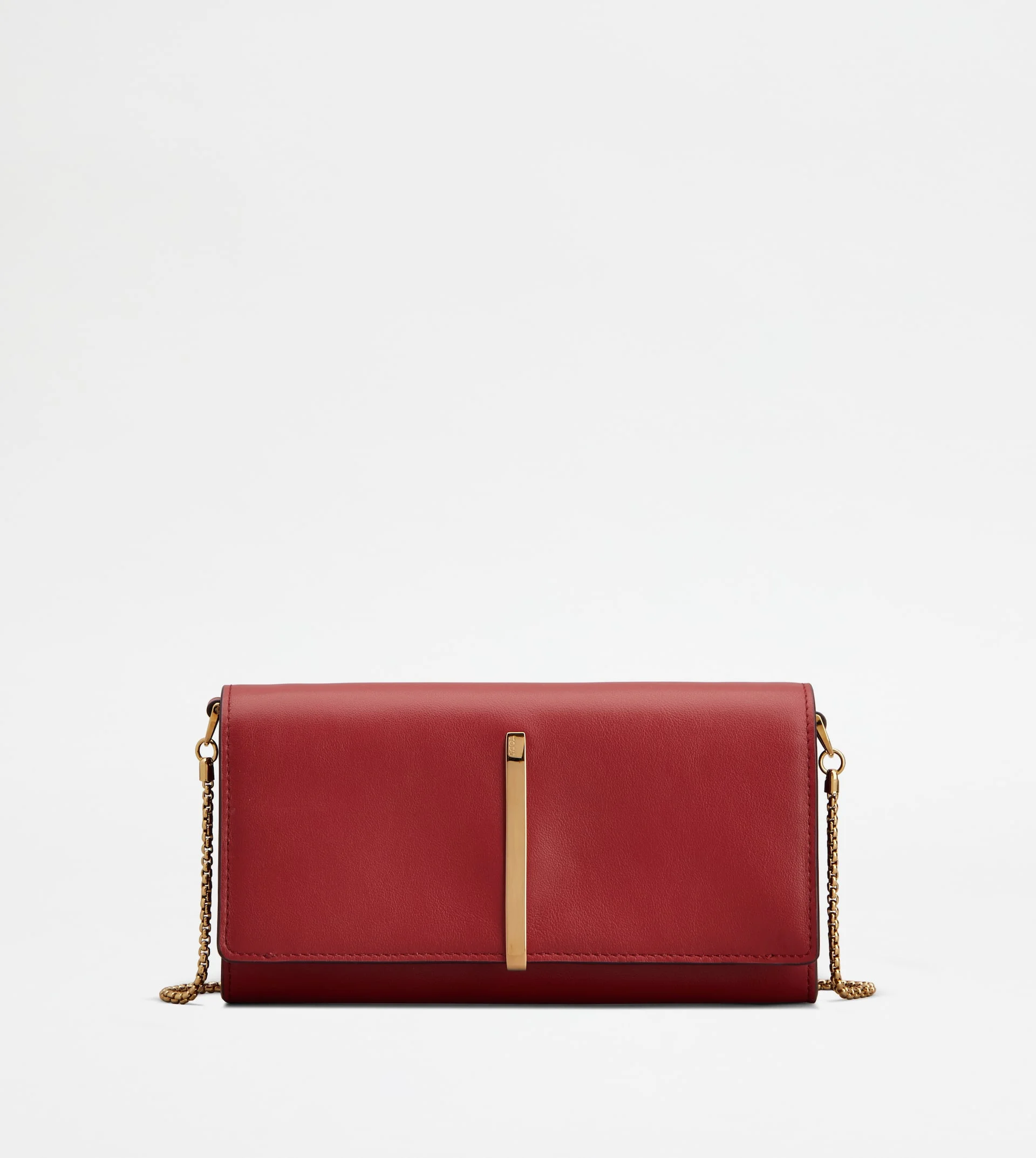 WALLET IN LEATHER WITH SHOULDER STRAP - RED