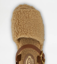 Wedge sandals in refined leather with soft wool lining, strap with branded metal buckle, rubber outsole. - Made in Italy - Women's Tod's wedge sandals - Leather and wool upper - Strap with branded metal buckle - Wool covered wedge - Rubber outsole - Maintenance and care cards included - Branded dustbag