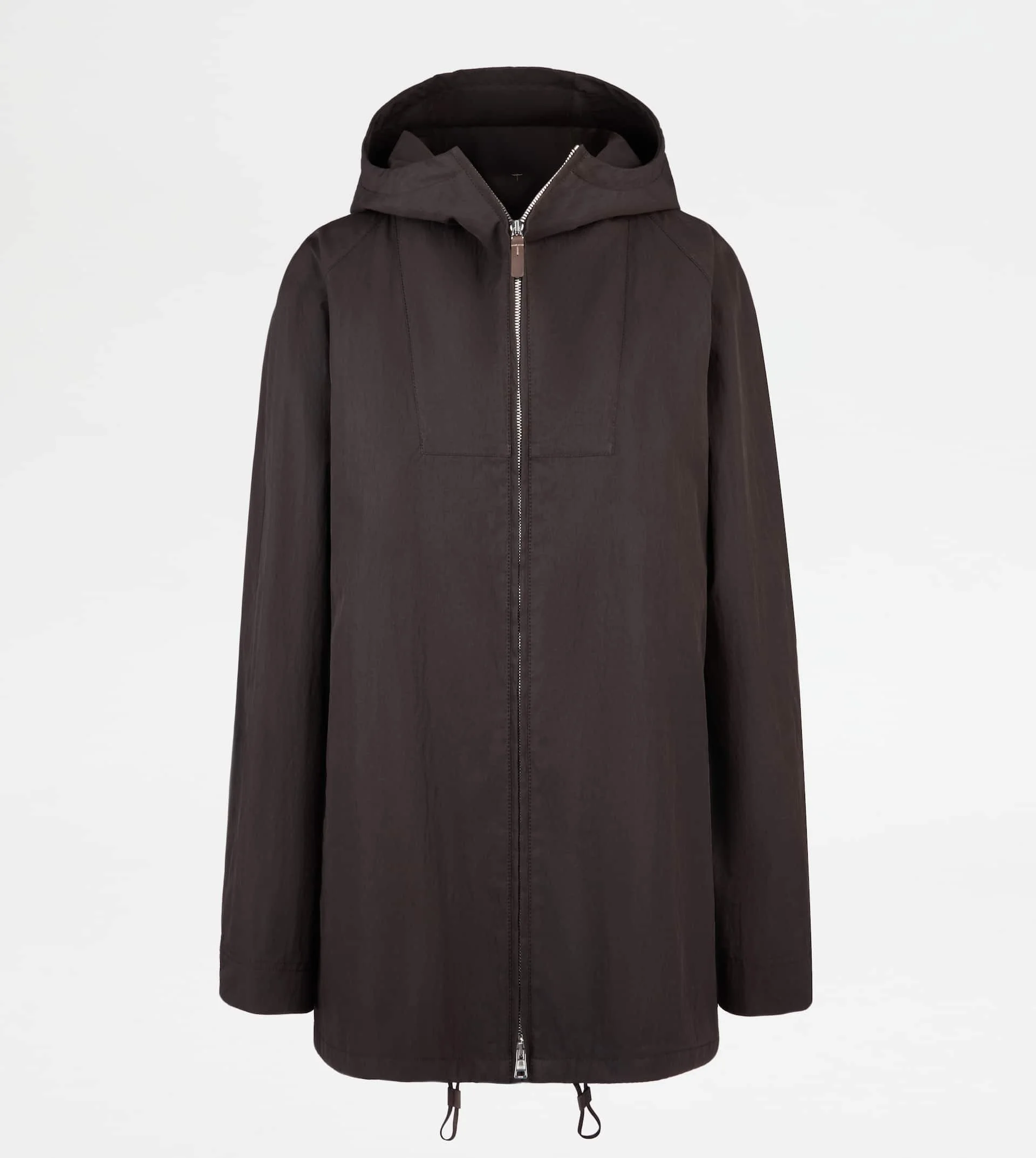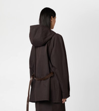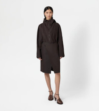 Windbreaker with wide hood, welt pockets and bottom drawstring. Crafted in waterproof technical cotton, it comes with an adjustable belt in leather and a double-slider zip fastening enriched by the T monogram embroidered on the zip pull. - Made in Italy - Women's Windbreaker - The model is 5' 9'' and wears size 38 (IT) - Item composition: 77% cotton, 23% polyamide, lining 100% cotton, leather detailing - Maintenance and care cards included