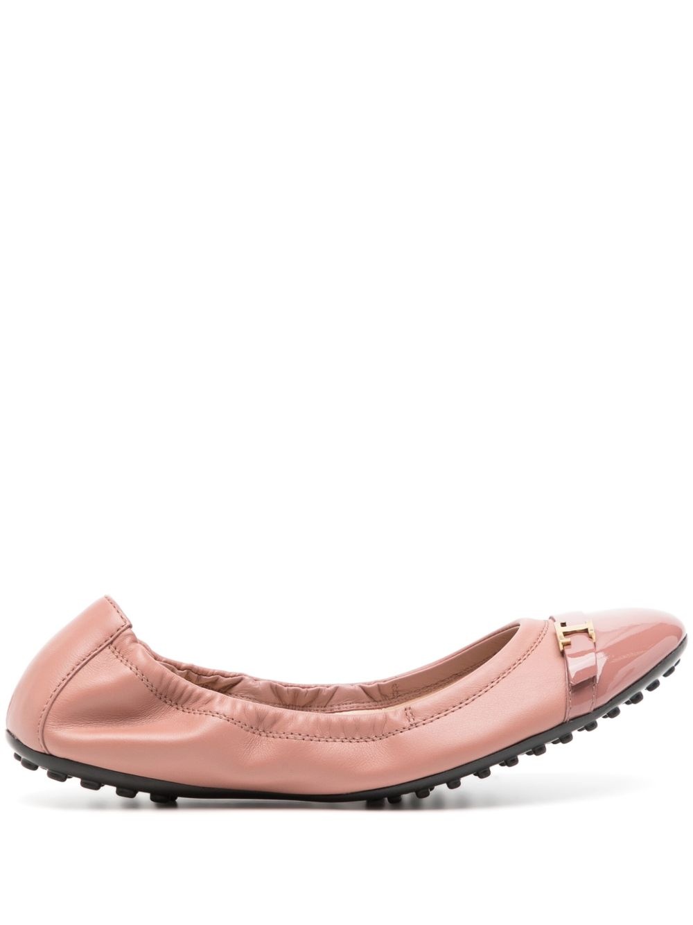 Dee leather ballerina shoes Showcasing a patent leather construction, Tod's Dee ballerina shoes feature the brand's signature Gommino sole. The timeless design is complete with a gold-tone 'T' logo for a recognisable finish. Highlights - Pink - Leather - Patent finish - Slip-on style - Gold-tone logo plaque - Round toe - Signature gommino sole Made in Italy Composition Leather 100% SIZE & FIT Measurement HEEL 0.39 in(1 cm) HEIGHT 2.75 in(7 cm)