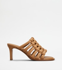 Open toe mules crafted in soft nappa leather. This version is characterized by an elegant padded weaving, covered heel and a leather outsole. A summer style that combines elegance and practicality. - Made in Italy - Women's mules in leather - Ovine leather upper - Leather lining and insole - Covered heel 3 ins - Leather outsole - Maintenance and care cards included - Branded dustbag