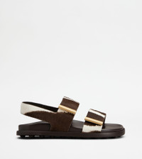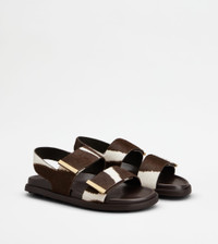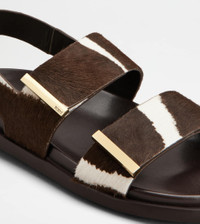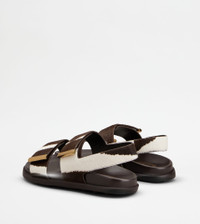 SANDALS IN PONY EFFECT LEATHER - WHITE, BROWN