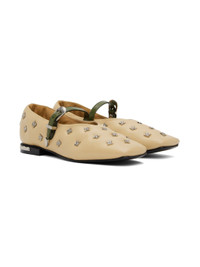 Padded buffed leather ballerina flats in beige and khaki. · Graphic studs throughout · Square toe · Adjustable pin-buckle strap at vamp · Plaque at heel · Padded leather footbed · Buffed leather and suede lining · Stacked leather heel with rubber injection · Leather sole Supplier color: Beige Upper: leather. Sole: leather, rubber. Made in Portugal 242492F118010