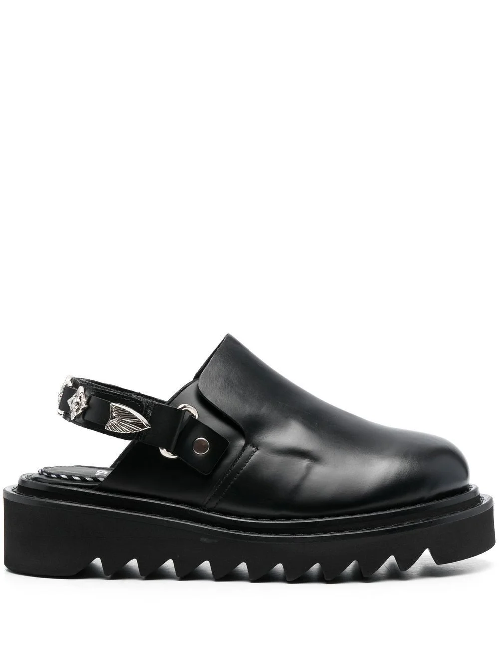 buckled ankle-strap flat clogs Highlights - Black - Polished finish - Round toe - Buckle-fastening ankle strap - Open back - Branded insole - Chunky rubber sole Imported Composition Leather 100% SIZE & FIT Measurement HEEL 2.16 in(5.5 cm) Sole height 1.18 in(3 cm)