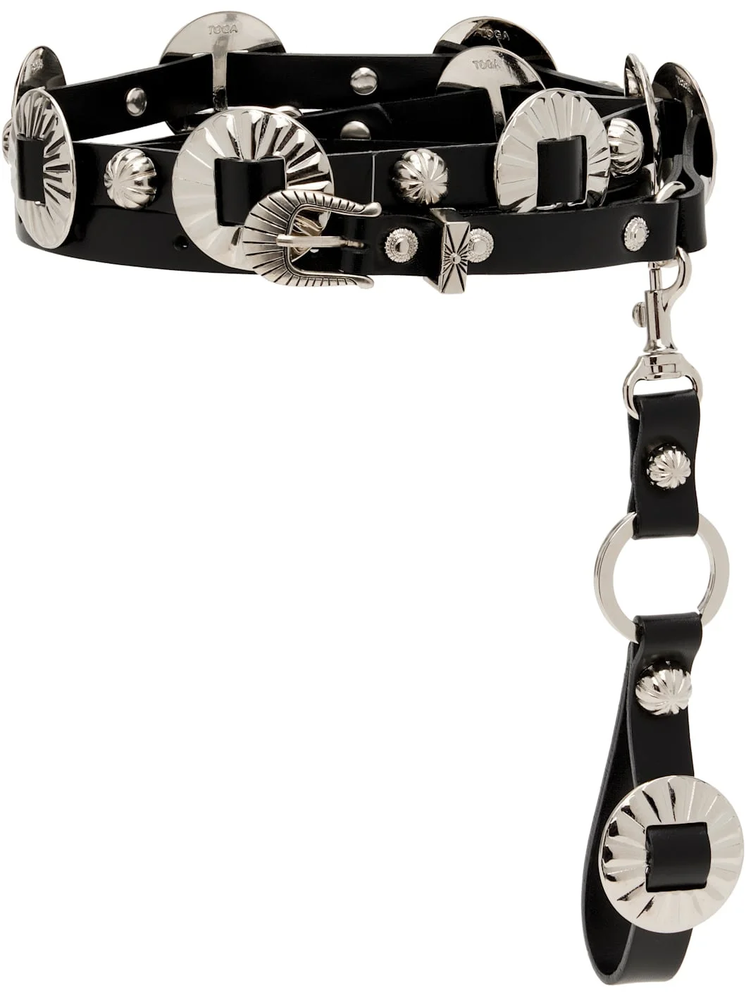 Buffed leather belt. · Hardware at length · Keeper loop at front · Pin-buckle fastening · Engraved silver-tone hardware · W0.5" Supplier color: Black Leather. Made in Japan 252492F001007