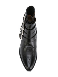 multi straps boots Black calf leather multi straps boots from Toga Pulla. Imported Composition Outer: Calf Leather 100% Lining: Calf Leather 100% Sole: Calf Leather 100% SIZE & FIT Measurement Sole height 0.39 in(1 cm) HEIGHT 4.72 in(12 cm) HEEL 1.96 in(5 cm) CIRCUMFERENCE 7.08 in(18 cm)