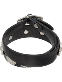 Wraparound buffed leather bracelet in black. · Engraved hardware throughout · Cinch fastening · Silver-tone hardware · L16" Supplier color: Black Leather. Made in Japan 252492F020001