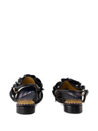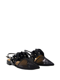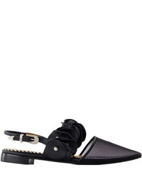 leather ballerina shoes Highlights - Black - Buckle-fastening slingback strap - Leather sole - Faux-flower detailing - Pointed toe Imported Composition Outer: Calf Leather 100%, Mesh 100% Sole: Calf Leather 100% Lining: Mesh 100%, Calf Leather 100%