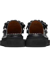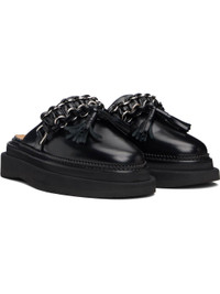 Buffed leather slip-on loafers. · Braided strap with O-rings and tassels at vamp · Serrated edge and topstitching at welt · Foam rubber midsole · Treaded rubber sole Supplier color: Black Upper: leather. Sole: rubber. Made in Portugal 252492F121005