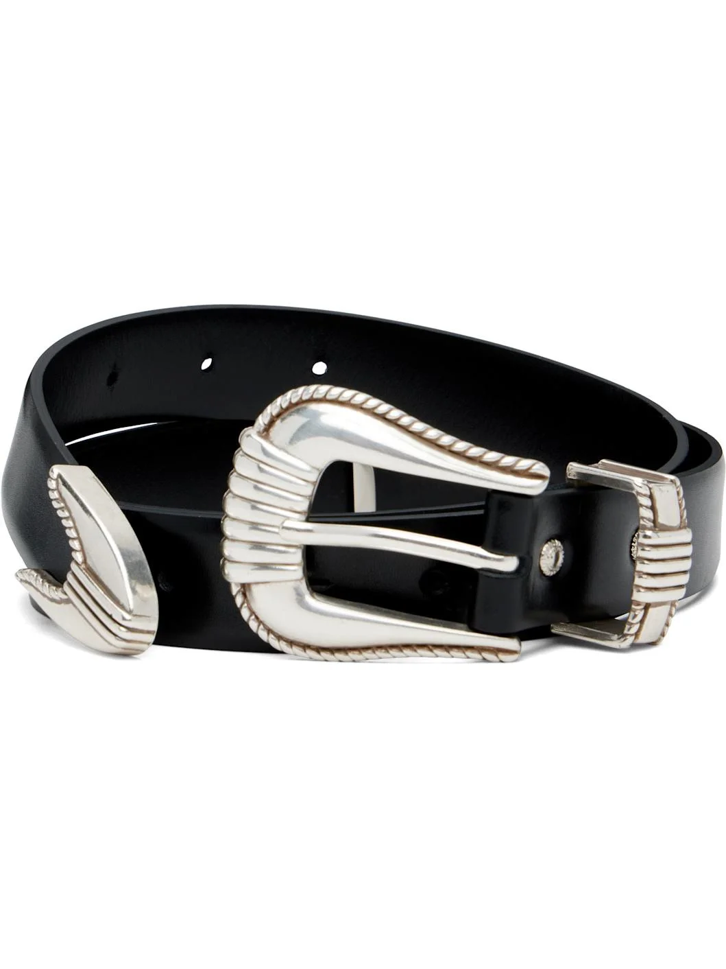 Buffed leather belt. · Keeper loop at front · Pin-buckle fastening · Engraved silver-tone hardware · W1" Supplier color: Black Leather. Made in Japan 252492F001002