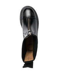ridged sole ankle boots black calf leather gem embellishment to the rear round toe side panels front zip fastening rear pull tab ridged rubber sole Imported Composition Leather 100% SIZE & FIT Measurement CIRCUMFERENCE 8.66 in(22 cm) HEEL 1.96 in(5 cm) HEIGHT 7.87 in(20 cm) Sole height 1.18 in(3 cm)