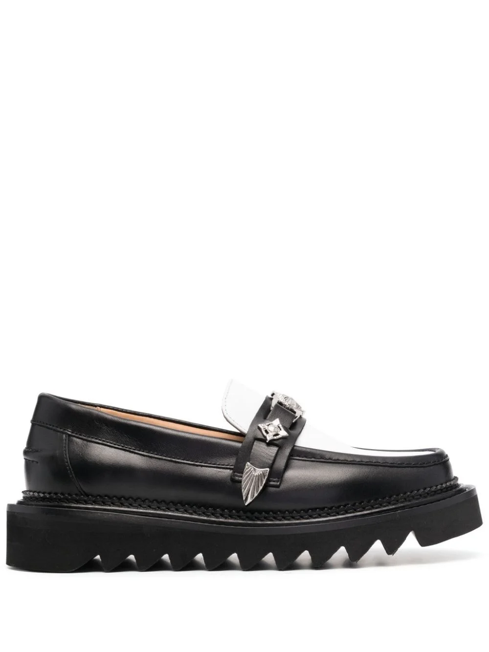 buckle-detail leather loafers black/white calf leather decorative buckle detailing round toe branded leather insole ridged rubber sole Imported Composition Leather 100% SIZE & FIT Measurement HEEL 1.37 in(3.5 cm) Sole height 0.98 in(2.5 cm)